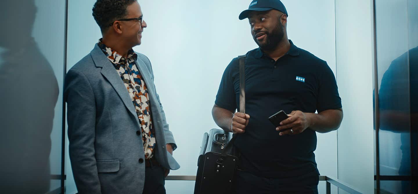 With the KONE Mobile app you can stay up to date with everything that’s going on with your equipment anywhere, anytime. You can choose to receive smartphone notifications on equipment status, maintenance schedules, and the progress of any maintenance work we’re doing for you.